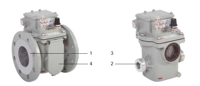 殼體是由耐氣候變化的鑄鋁合金制成,表層已涂色. 依照結(jié)構(gòu)設(shè)計(jì)形式可分為法蘭盤(pán)(圖3中1)連接或螺紋連接(圖3中2). 對(duì)殼體的變型品種選項(xiàng)將在下文第5點(diǎn)(單浮子瓦斯繼電器)和第7點(diǎn)( 雙浮子瓦斯繼電器)中加以說(shuō)明. 其他選項(xiàng)歡迎垂詢.